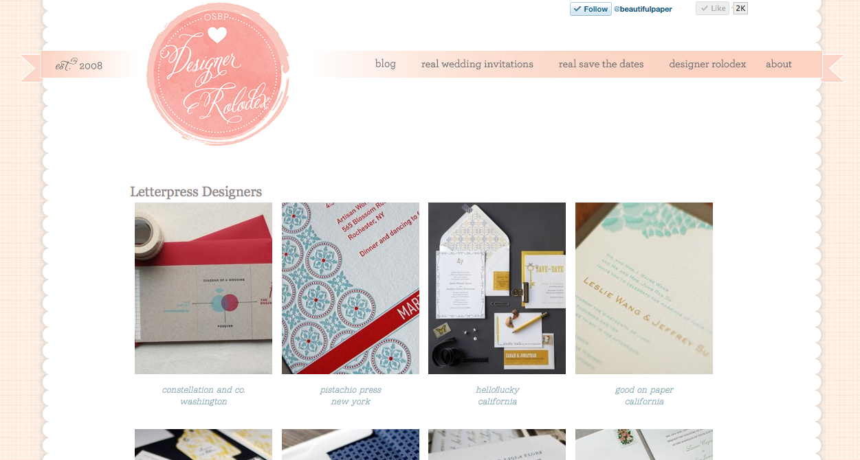 We are so excited to be a part of the Designer Rolodex on Oh So Beautiful Paper! This is a beautifully curated collection of wedding stationery and some of my very favorite designers are listed on here as well. Huge congrats to Nole for organizing such a well-designed and inspired directory!